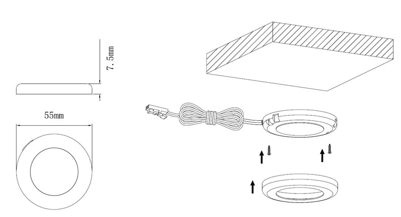 Silver Color ABS Material 1.5W DC12V Round LED Cabinet Light